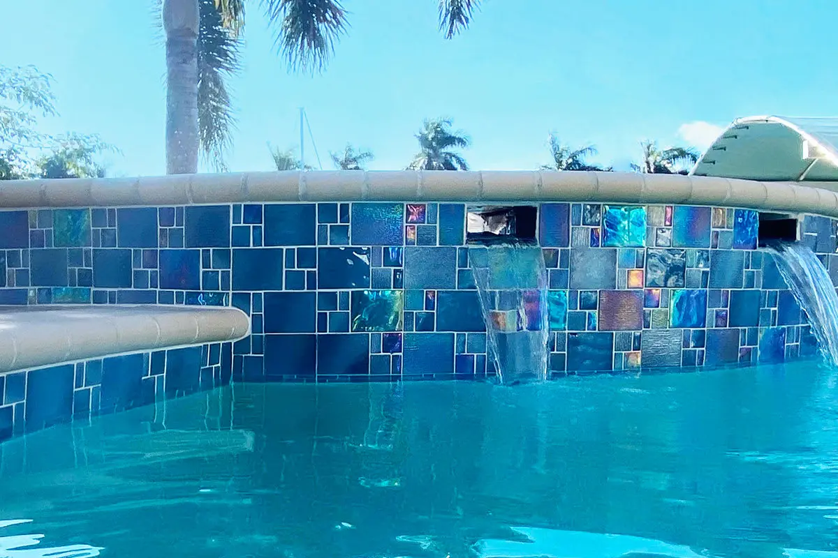 A: Glass tile is low-maintenance. Regular brushing and proper water chemistry help keep it looking new. It’s also highly resistant to algae and scale buildup compared to other materials.